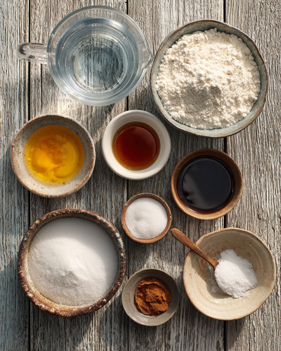 Here’s everything you’ll need to make these crispy little wonders – and trust me, you probably have most of this in your pantry already! I always double check my ingredients before starting because nothing’s worse than realizing you’re out of cinnamon mid-recipe (been there!).