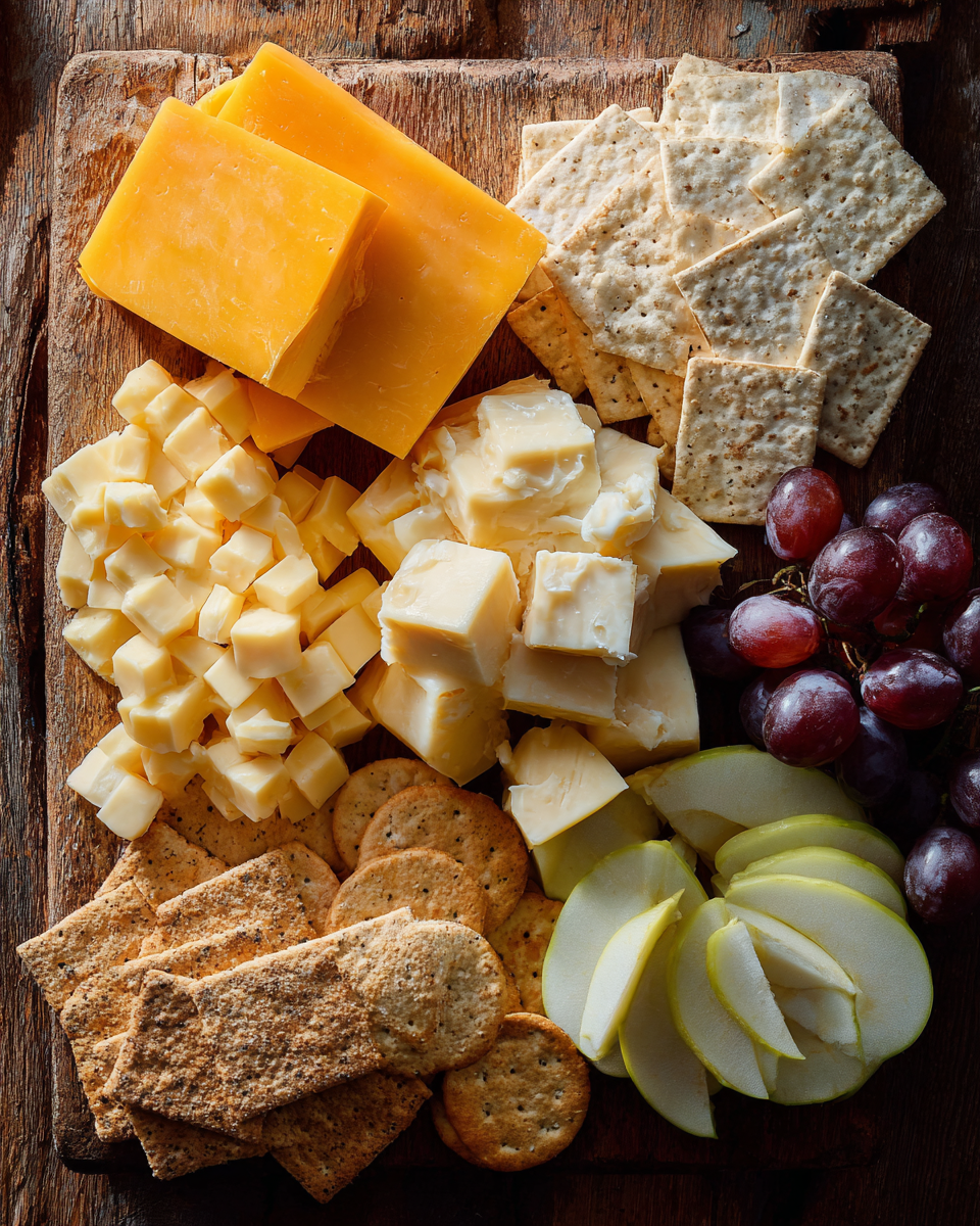 • 200g cheese (your choice! I adore sharp cheddar for its punch or creamy brie for elegance – slice into bite-sized pieces that won’t topple off your crackers)