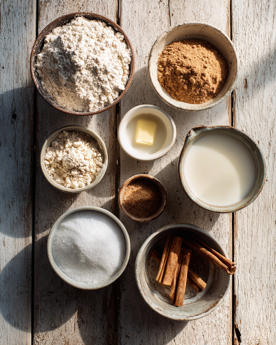 Here’s the beautiful thing about this cinnamon roll mug cake – you probably already have everything in your pantry right now! I’ve made this with bleary-eyed midnight cravings more times than I can count, and these basic ingredients never let me down: