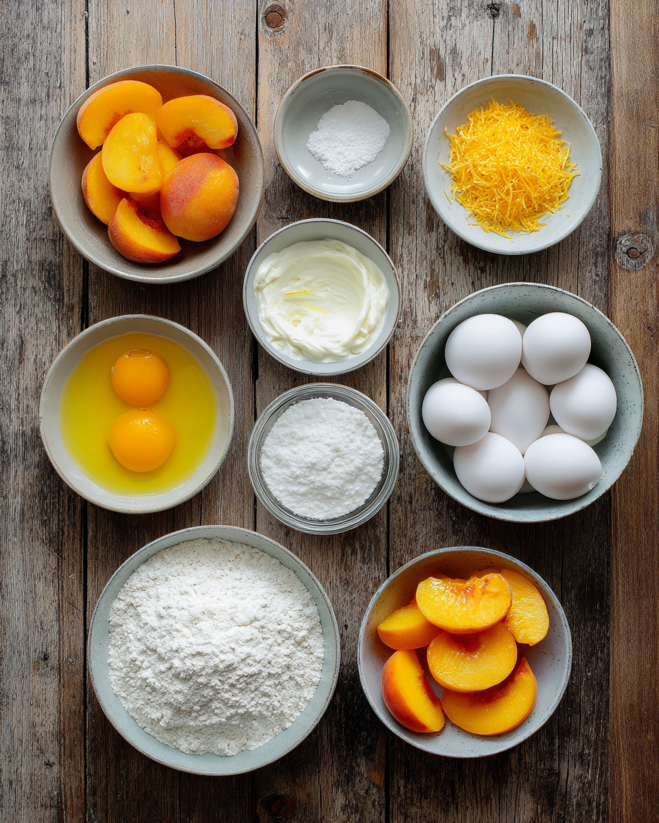 Store any leftovers (if you’re lucky!) in an airtight container at room temp for up to 2 days. The fridge will dry it out, but if you must refrigerate, bring slices to room temp before eating. Pro tip: The cake actually tastes even better the next day as the citrus flavors mingle – just add fresh peaches each time!