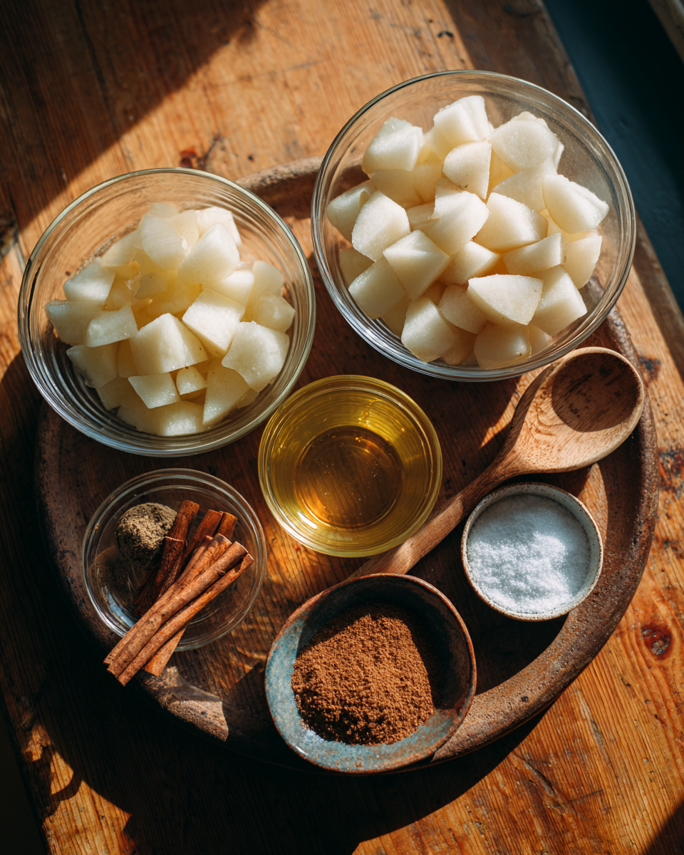 Pears: Grandma always said “firm but not rock-hard” was perfect. Bartlett or Anjou work best – they hold their shape but break down nicely. Underripe is better than overripe (mushy pears make jammy preserves). No need to be perfect with the dicing – rustic chunks add character!