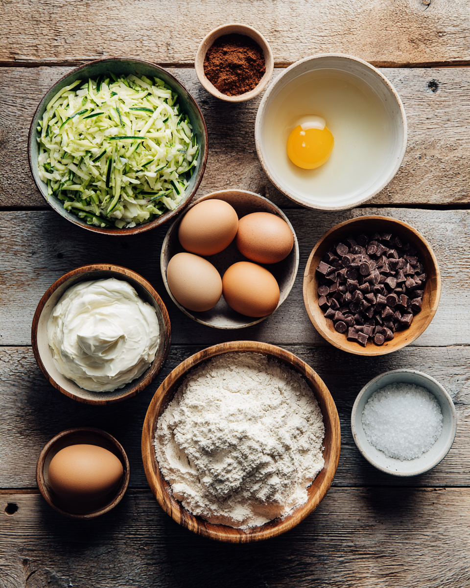 Ingredients for Greek Yogurt Chocolate-Chip Zucchini Muffins (Small-Batch Loaf)