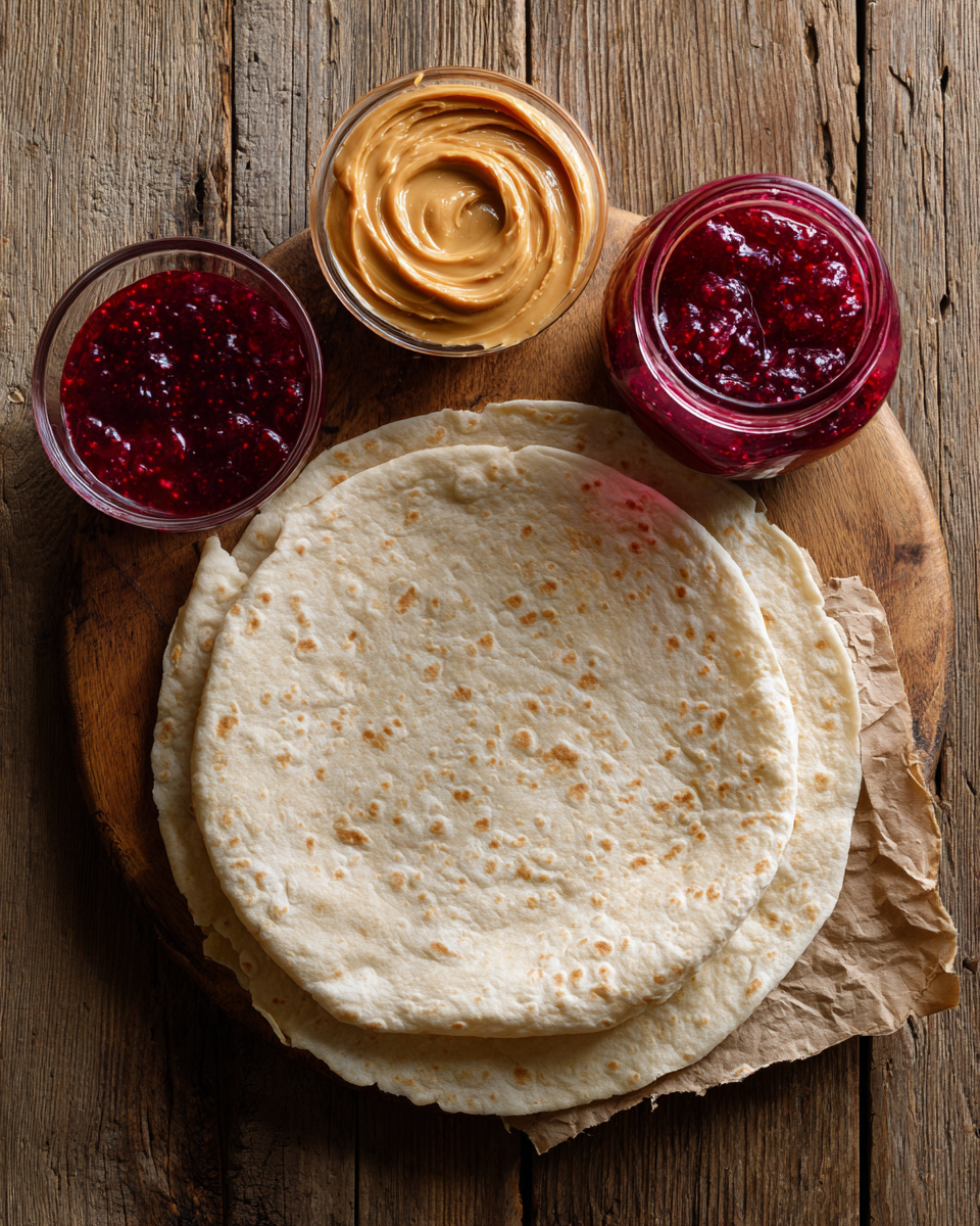 Ingredients for Peanut Butter and Jelly Roll-Ups