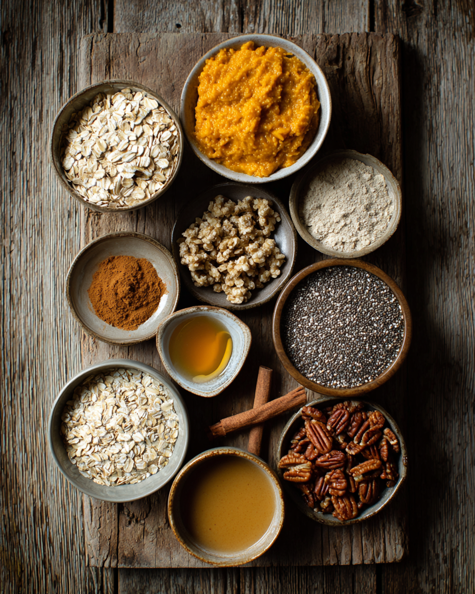 Here’s everything you’ll need to whip up a batch of these irresistible pumpkin energy bites. I swear by these exact ingredients – they make all the difference between “meh” and “wow!” Trust me, I’ve experimented with substitutions before and always come back to this perfect combo.